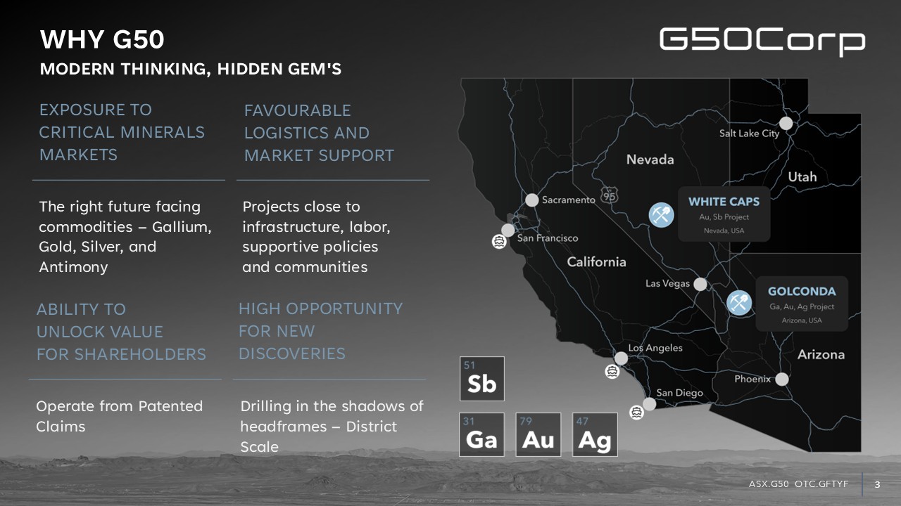Precious metals and critical minerals exploration company rapidly progressing high potential projects in Southwest USA
