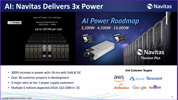 G50 has long pointed to Navitas (and Infineon in Europe) as market leaders in this space. Below we include a slide from a Navitas presentation from 2024 that we have used in our presentations to show the customers and likely penetration for Navitas (including Nvidia). A formal collaboration now is an important milestone for the industry.